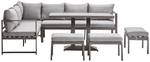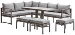 - Contenuto della consegna: Set da esterno composto da 2 divani a 3 sedute, 3 pouf e 1 tavolo con cuscini da seduta e da schienale