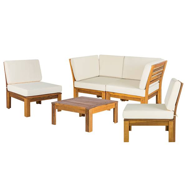 I mobili lounge Lexi, che comprendono anche questo set di 5 mobili, trasformeranno il vostro balcone o la vostra terrazza in un luogo dal look originale e raffinato. Possono ospitare anche più di una persona: le sedute possono essere posizionate liberamente e hanno diverse varianti di collocazione. La struttura in legno di acacia verniciato e il design lineare si abbinano perfettamente a tutti gli stili di arredamento.
